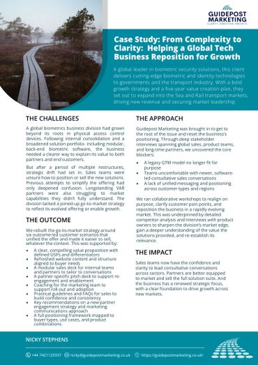 To help generate cut-through for a new product launch of a facial recognition access control device, I crafted a unique direct mail account-based marketing campaign that focused on 40 top individuals worldwide, inviting them to an exclusive webinar where they could learn more about the product. Sending personalised information in a unique format around the product directly to their desks not only deepened loyalty with important customers but also generated numerous marketing qualified leads for the business.